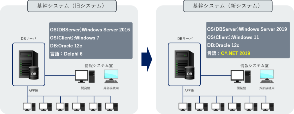 背景:システムがDelphi6で製造されており、対応OSがWindows7までとなるため、早急な対応が必要となっていた。